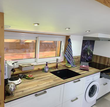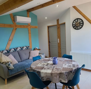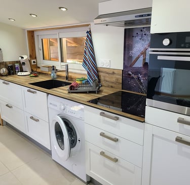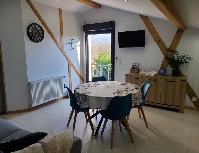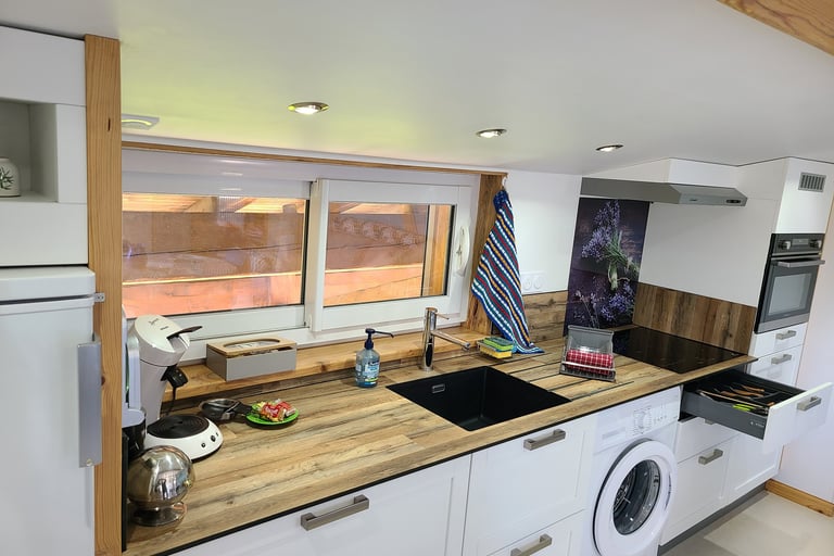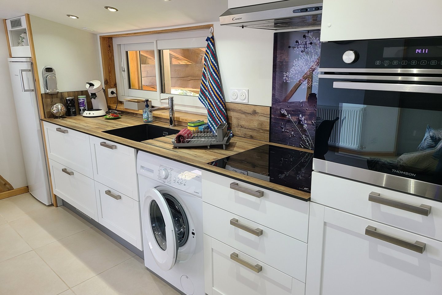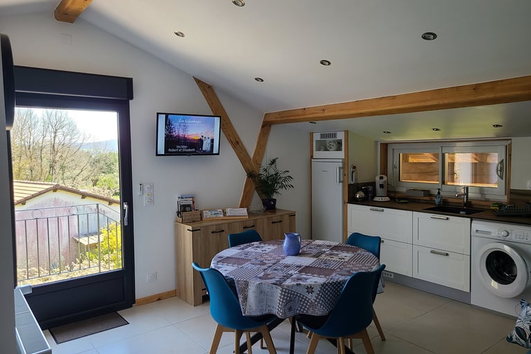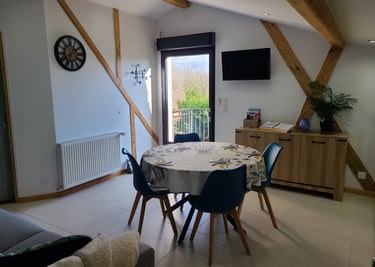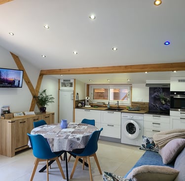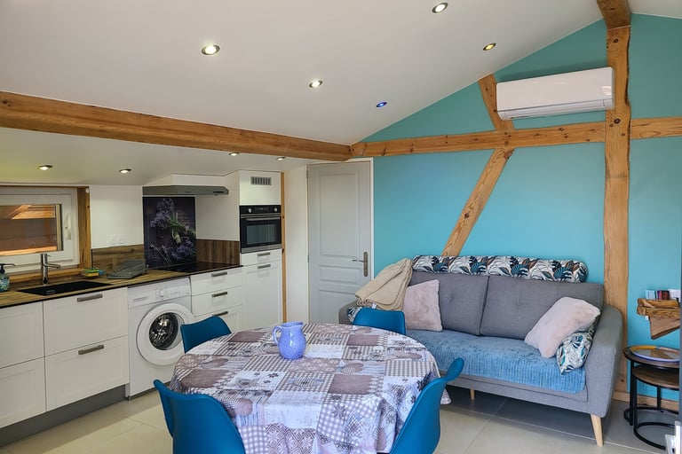 A votre disposition une cuisine toute équipée, un séjour/salle manger.